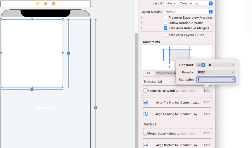 contentView 와 scrollView 의 height priority 를 낮춰준다.