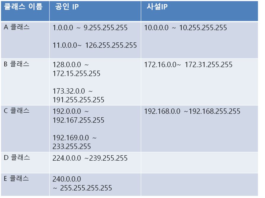 사설 IP - 외부랑 연결이 안되고 가상으로 지정하는 IP 주소