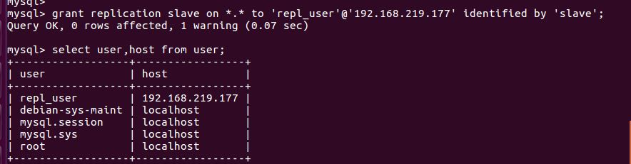 슬레이브 서버(192.168.219.177) 에 대한 repl_user 계정 생성