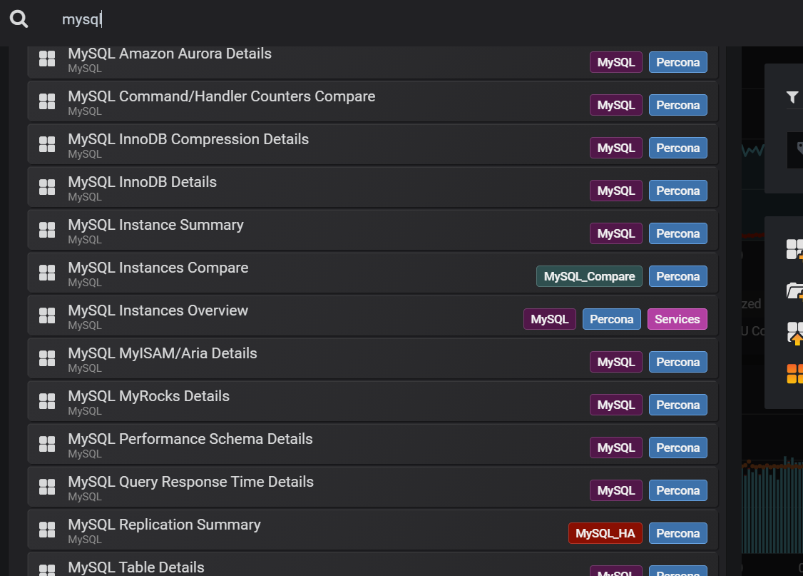 아래와 같이 MySQL 관련된 여러가지 대시보드를 확인할 수 있다 .