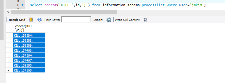 명령어: SELECT * FROM INFORMATION_SCHEMA.PROCESSLIST;