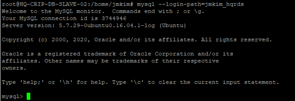 /home/jmkim# mysql_config_editor print --login-path=jmkim_hqrds